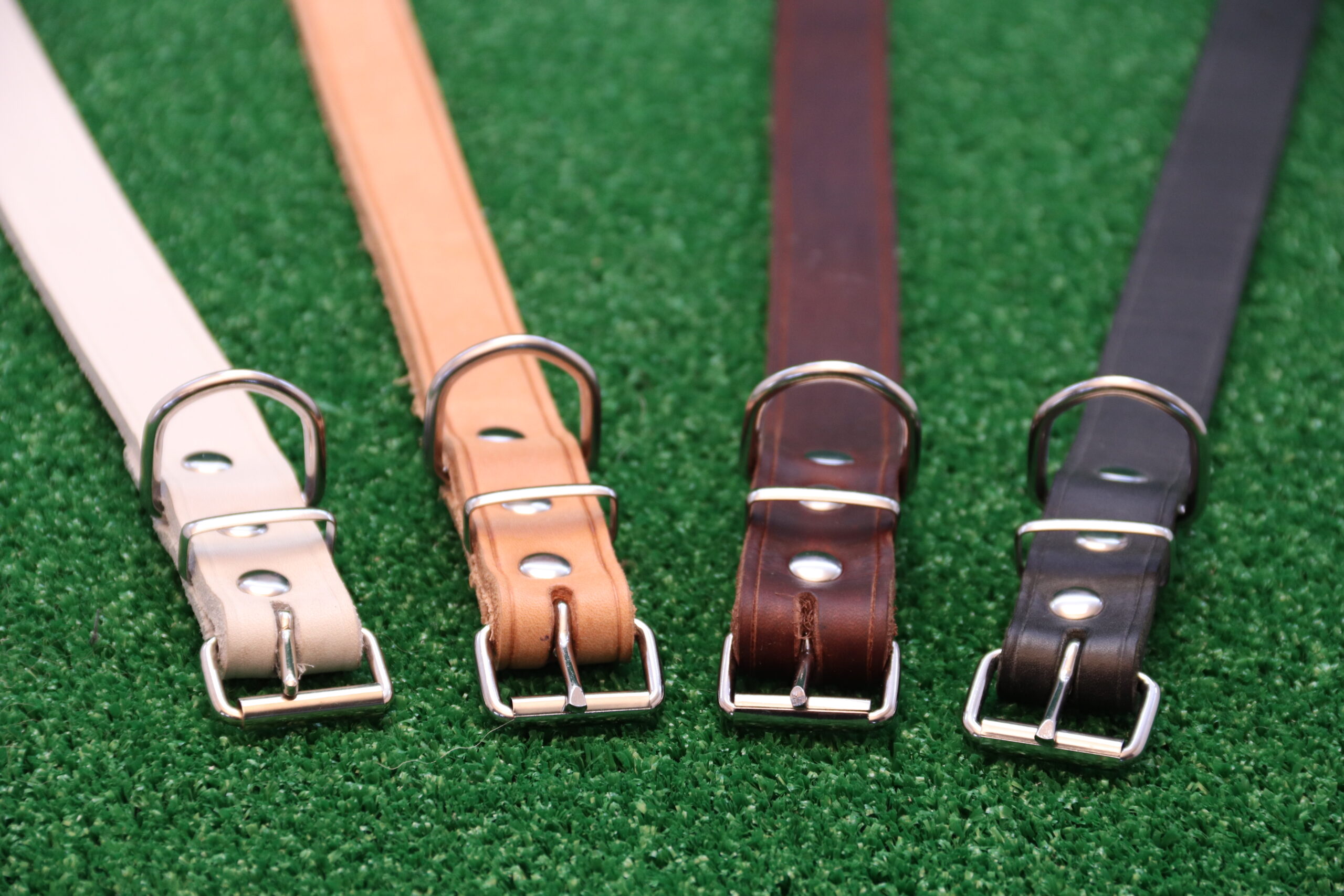 Vanaf vrijdag 24 april en de hele maand mei 2026, zijn de halsbanden glad met 10% korting verkrijgbaar. De halsbanden glad zijn gemaakt van een goede kwaliteit leer, en is verkrijgbaar in de standaard kleuren en lengtes. De kleuren zijn wit, naturel, bruin en zwart. Ook voor de halsbanden glad geldt, wil je een andere breedte of lengte? Neem contact met ons op.
